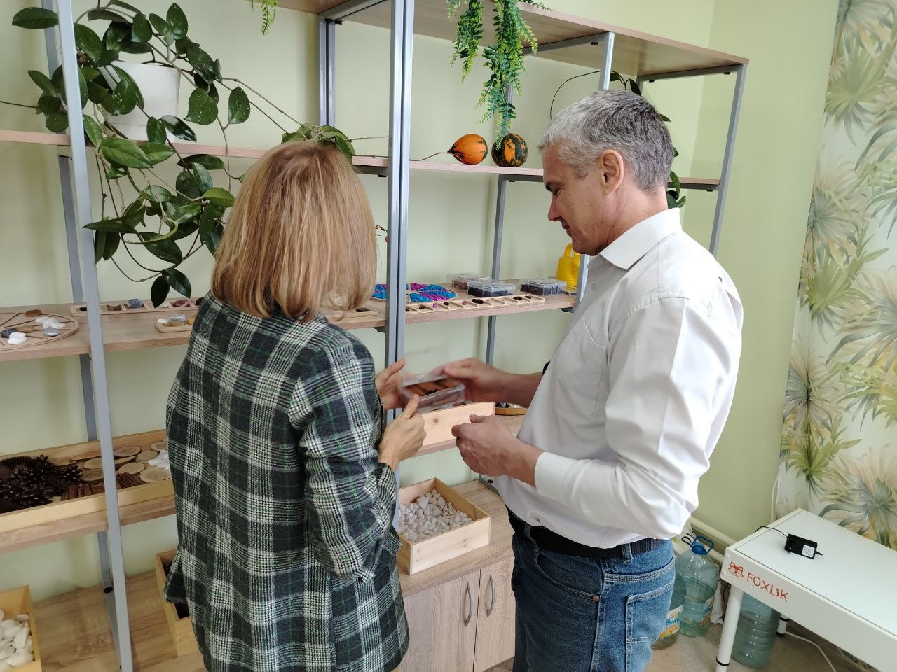 Вадим Борисович, под руководством наставника министра труда и социальной защиты Кузбасса Натальи Сергеевны Чайки знакомится с учреждениями социального обслуживания Кузбасса.